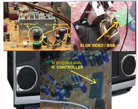 pertama tama sepperti biasa buka tutup belakang tv anda kemudian tarik mesin tv anda kemudian periksaa solderan komponen biasanya ada solderan yanng retak atau sudah longgar karena seing terkena panas karena pcb sudah berumur lama.